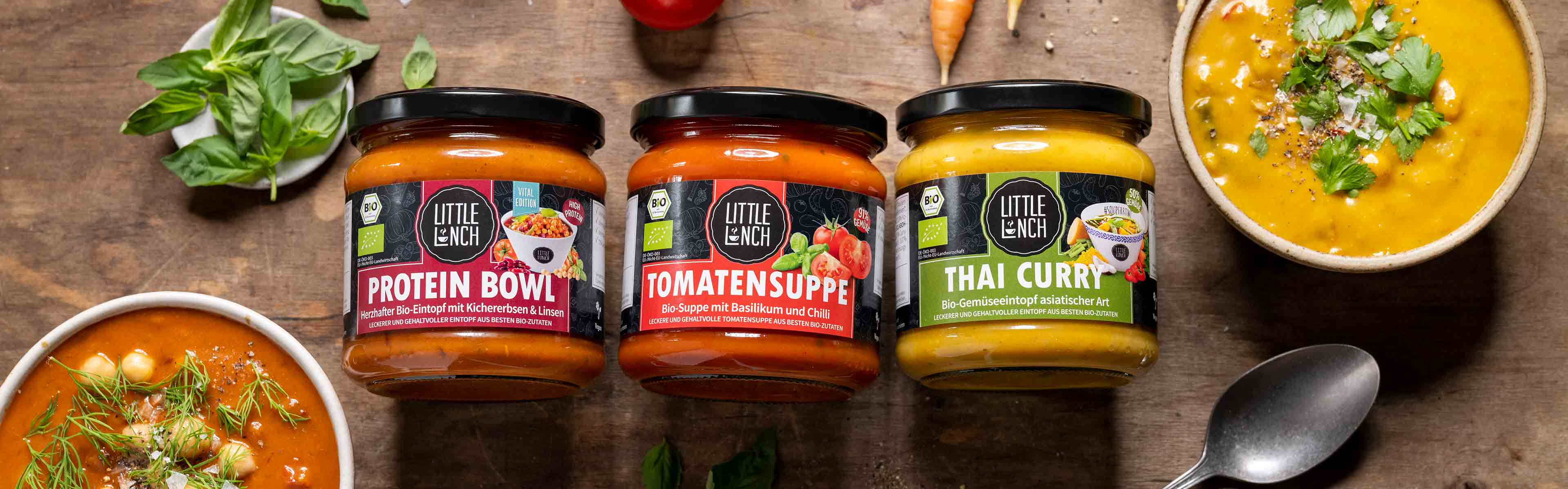 Dürfen wir vorstellen? Little Lunch - die wohl beste Biosuppe, die du jemals gegessen hast! Wir sorgen dafür, dass sich die allseits bekannte Frage "Was esse ich heute Mittag?" in Suppe auflöst.