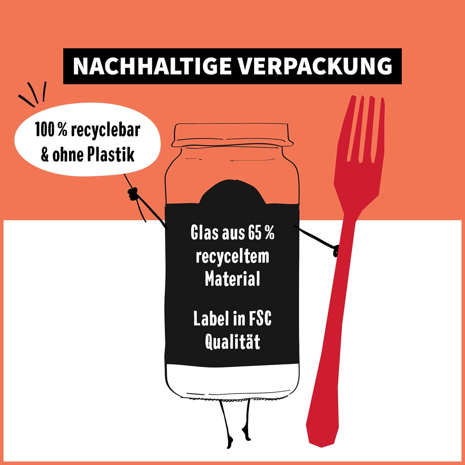 Du magst es scharf? Dann bist du mit unserer Arrabbiata Sauce an der richtigen Adresse! Sind wir ehrlich – Pasta geht irgendwie immer! Aber damit das leckere Kohlenhydrat nicht den Kick verliert, sollte man mit verschiedensten Saucen experimentieren und etwas Schärfe in sein Leben bringen. Unsere Lieblingssauce liefert genau das: sonnengereifte Tomaten, würzige Zwiebeln mit fruchtigem Traubensaft und Karotten und natürlich der nicht so geheimen Geheimzutat: Chilli. Dabei kommen alle Zutaten aus biologisch kontrolliertem Anbau und werden so regional bezogen wie möglich. Unsere rote Sauce kann also mit einem reinen grünen Gewissen genossen werden. Jetzt denken sich vielleicht einige: „Scharf? Ist leider gar nicht mein Ding.“ Aber nicht die Flinte ins Korn werfen, denn unsere Lieblingssauce Arrabbiata ist keine Chilipaste im Glas. Vielmehr überzeugt unsere Arrabbiata mit einer fein ausbalancierten Chili-Note, die sowohl der feurigen Ansprüche der Schärfe-Fans als den sensibleren Geschmackssinn unserer gemäßigten Feinschmecker bedient. Der spicy, vegetarische Bruder der Bolognese ist also in jeden Fall perfekt für alle Pasta-Fans!