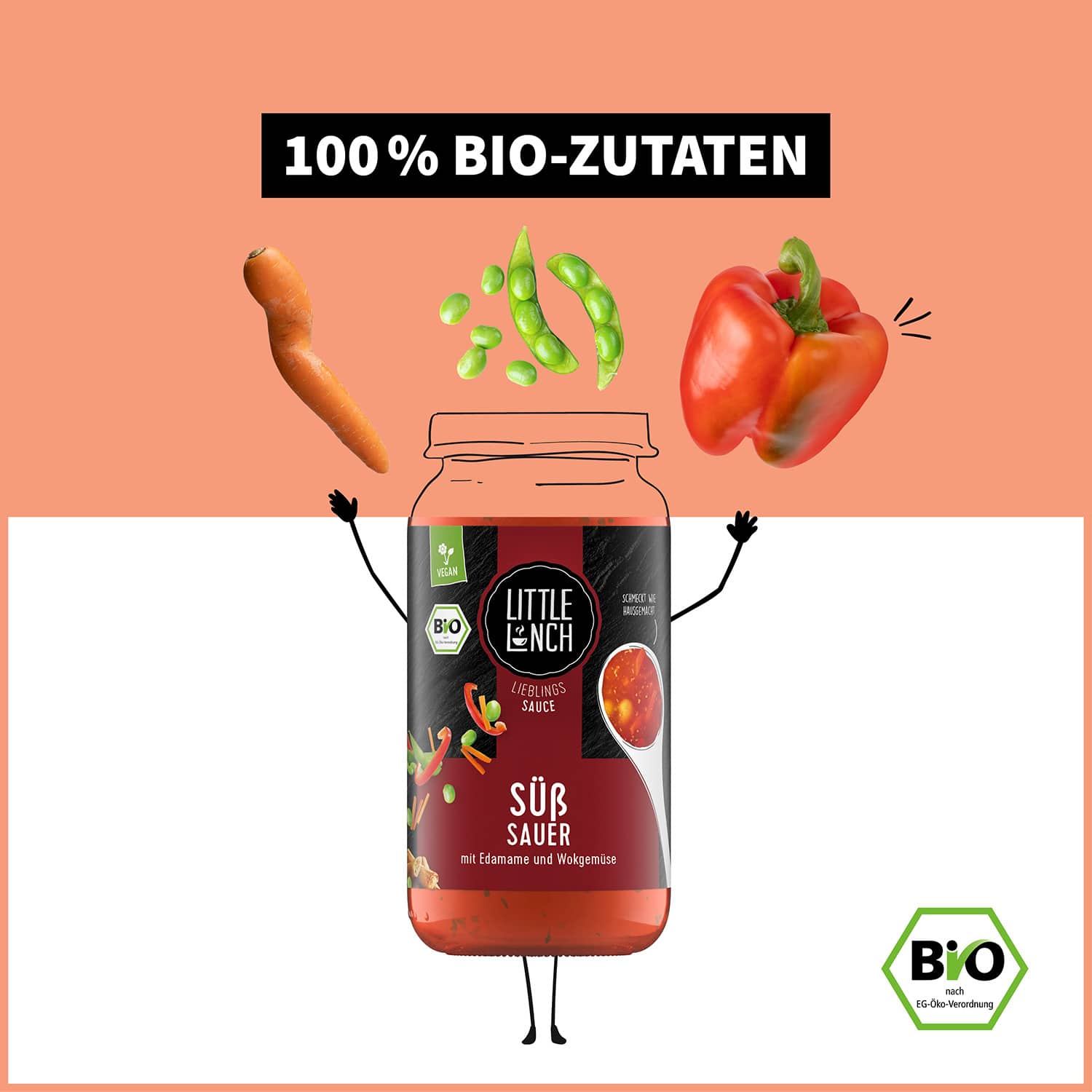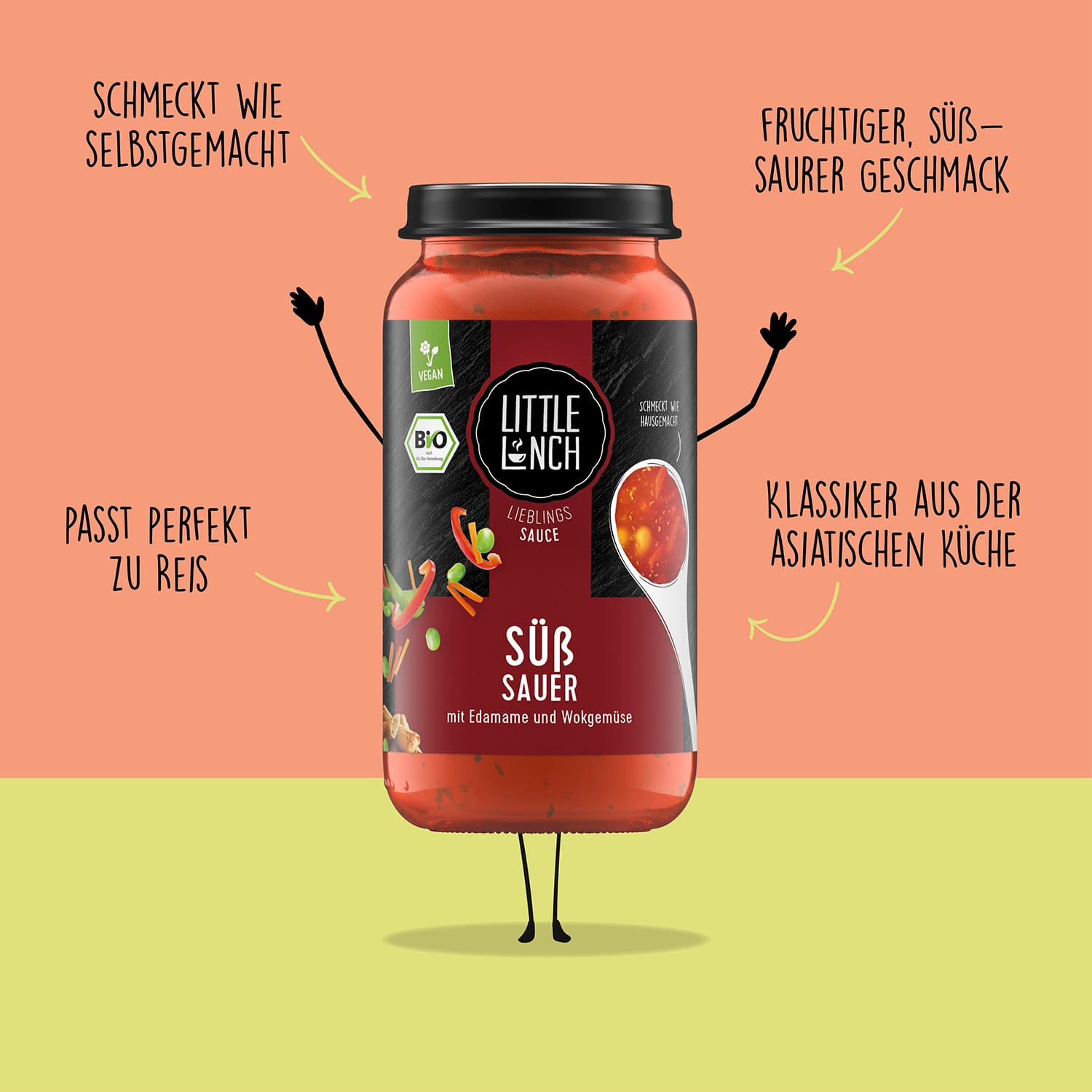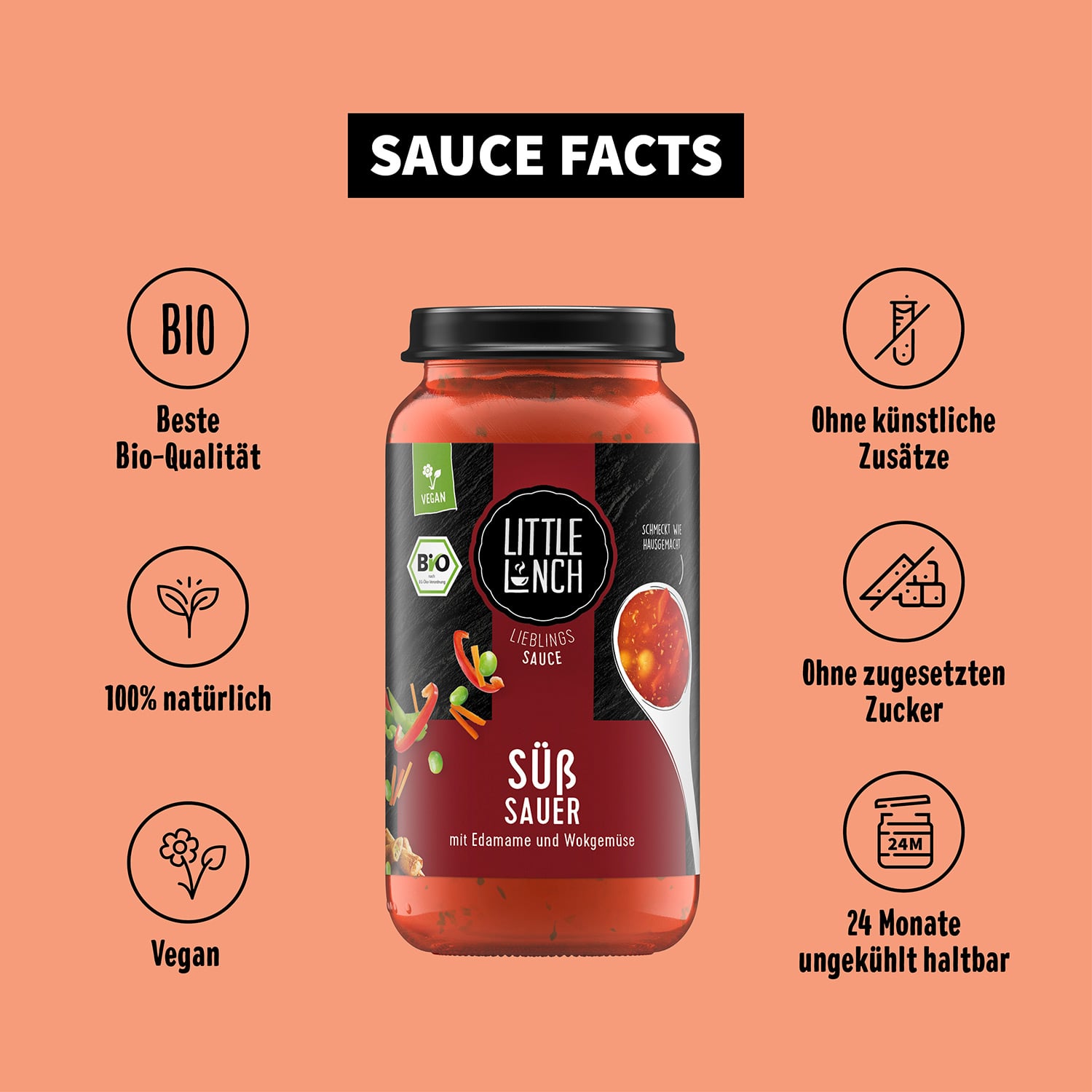 Unsere Lieblingssauce Süß Sauer überzeugt mit authentischem Geschmack. Edamame, Wokgemüse und typisch asiatische Gewürze wie Ingwer und Chili ergänzen sich zu einem exotischen Geschmackserlebnis. Passt perfekt zu Reis, asiatischen Nudeln und Frühlingsrollen. Natürlicher Geschmack, wie hausgemacht – ohne künstliche Zusätze.