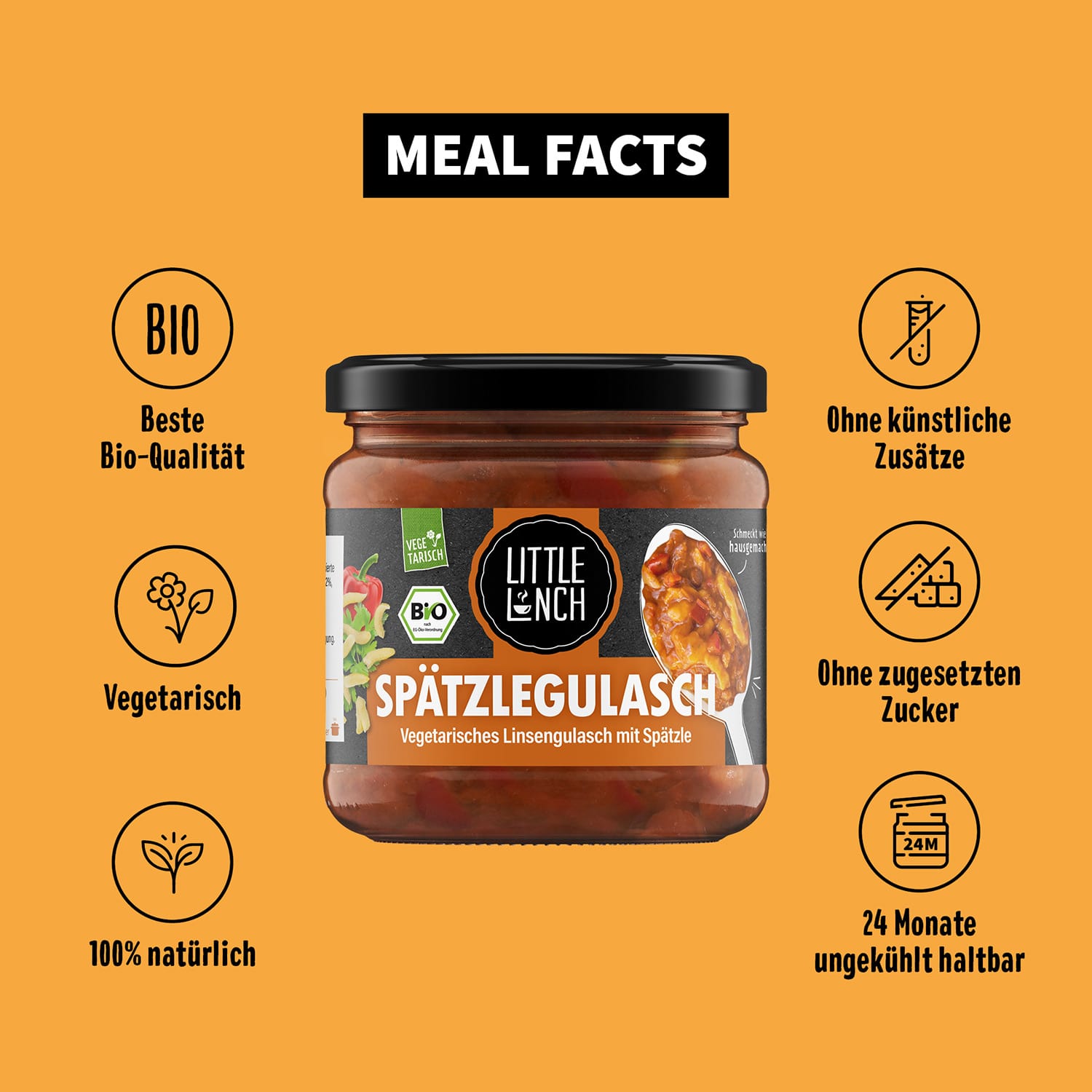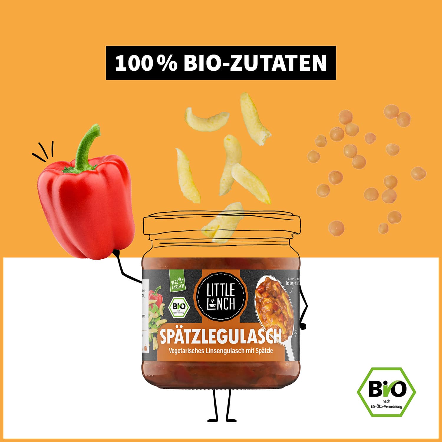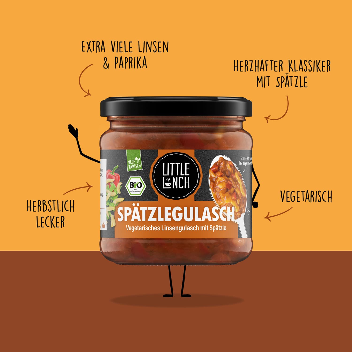 Klassiker mit Spätzle | 100% Bio | Mit Linsen & Paprika | Ohne zugesetzten Zucker | Vegetarisch | Ohne Geschmacksverstärker | 350g je Glas