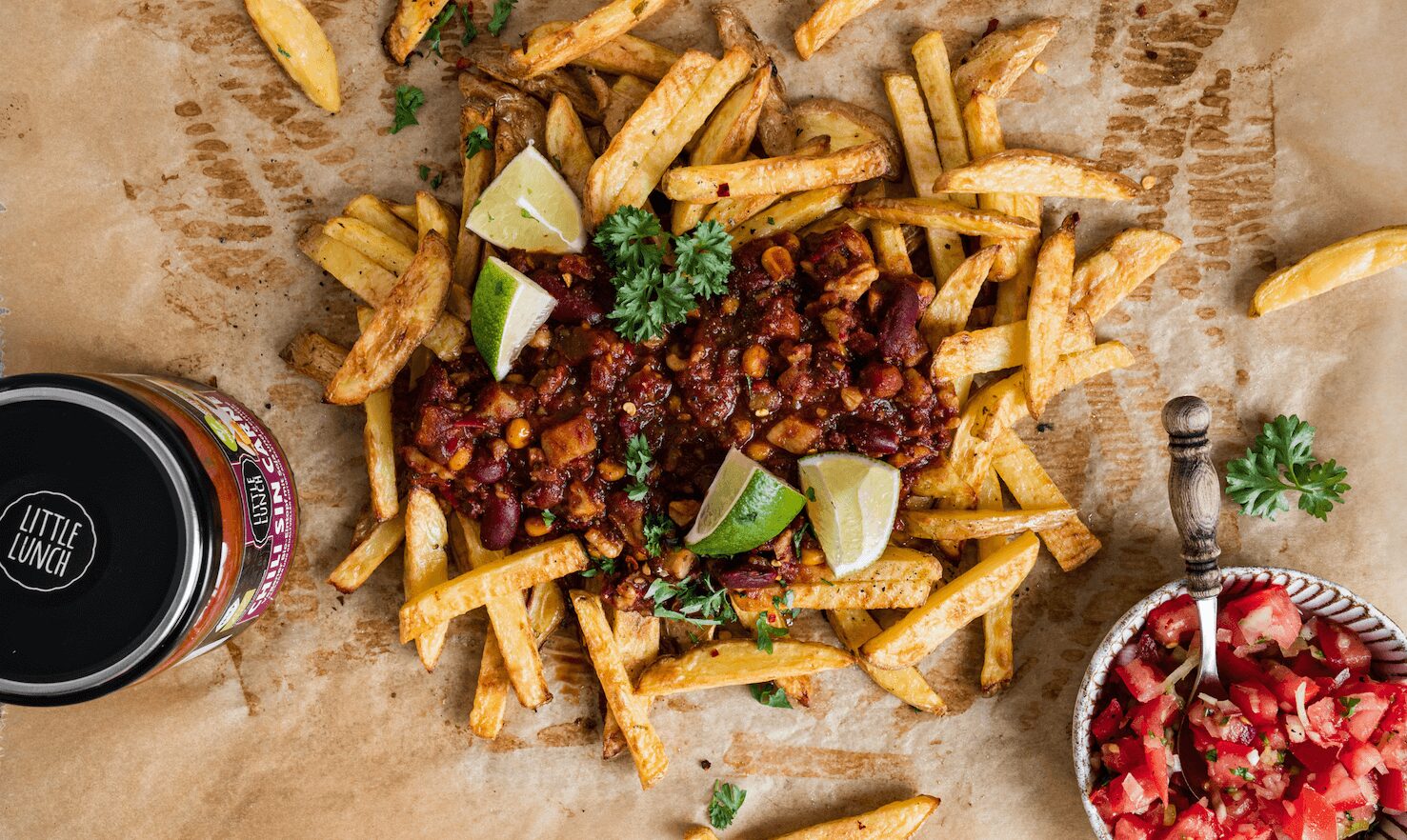 Wir mögen es scharf! Und noch mehr stehen auf selbstgemachte Pommes kombiniert mit unserem Chili sin Carne 😍 Dieses vegane Rezept mit dem mexikanischen Klassiker (ohne Fleisch), knusprigen Fries und einer erfrischenden Tomaten-Salsa lädt zu einem gemütlichen Snack-Abend mit Freunden ein. Wir zeigen euch wie die perfekten Fries im Ofen gelingen und warum ihr sie in Zukunft unbedingt mit einem feurigen Dip genießen solltet. Einfach, vegan und mit POMMES POMMES POMMES!