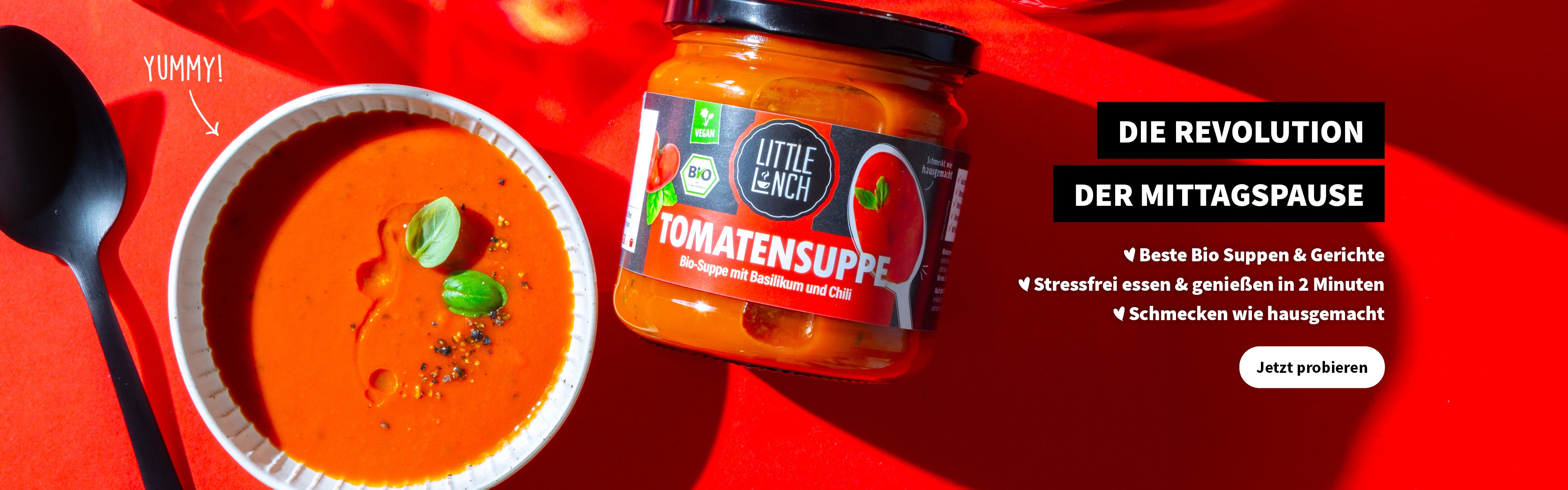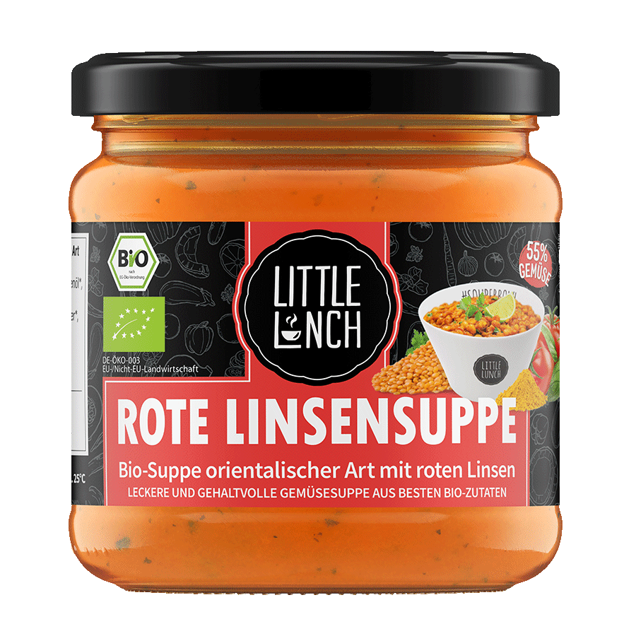 Im Juni 2014 begann die Little Lunch Erfolgsstory mit unseren ersten fünf veganen und glutenfreien Bio-Suppen.Seitdem revolutionieren wir täglich die Mittagspausen, vieler unserer Kund:innen. Mittlerweile hat nicht nur unsere Suppenfamilie Zuwachs bekommen, sondern wir haben wir aber auch weitere Produkte kreiert um den stressigen Arbeitsalltag und die Frage “Was gibt es heute zum Mittag” zu erleichtern. Unseren Grundsätzen sind wir dabei immer treu geblieben. All unsere Little Lunch Produkte sind