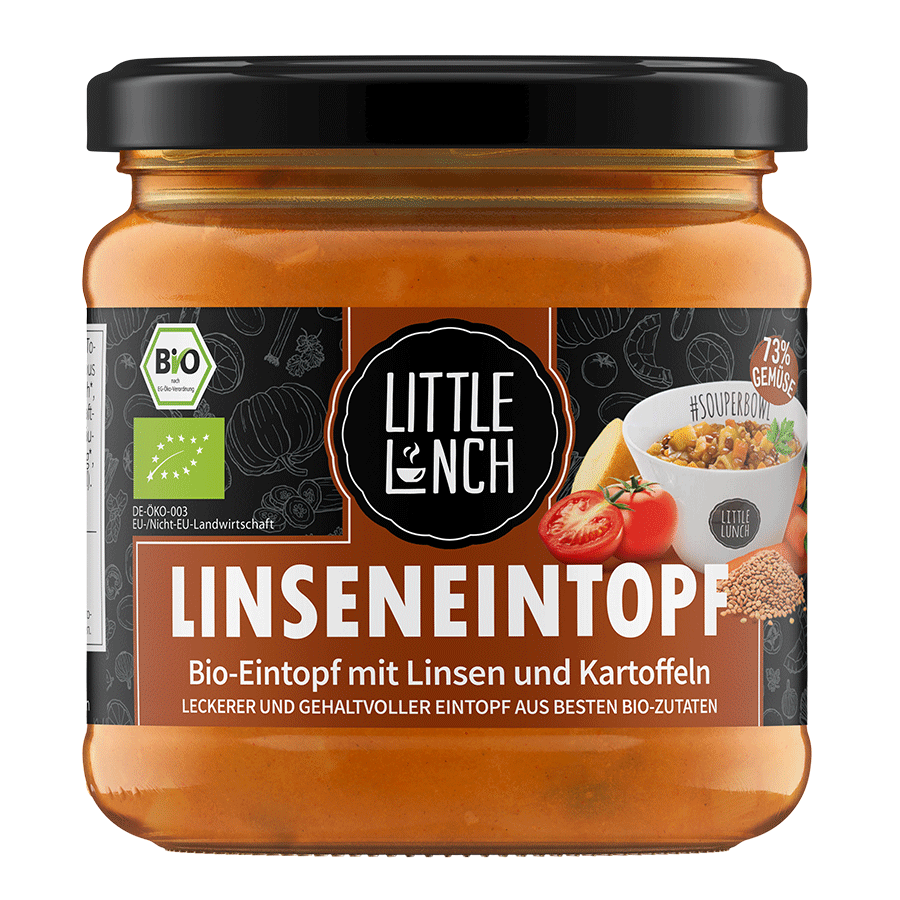 Dass es auch ganz anders geht, zeigen wir mit unserem leckeren und stetig wachsenden Little Lunch Sortiment aus schmackhaften und vollwertigen Bio-Suppen und -Eintöpfen, die praktischerweise auch ungekühlt 24 Monate lang haltbar und direkt aus dem Glas gelöffelt werden können. Ob vegan, veggie oder mit Bio-Fleisch – für jeden Geschmack und Ernährungsstil ist das Richtige dabei.